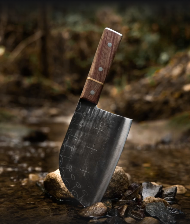 These sacred symbols give the blade a commanding presence — a relic feel that sets it apart from every mass-produced cleaver you’ve ever seen.